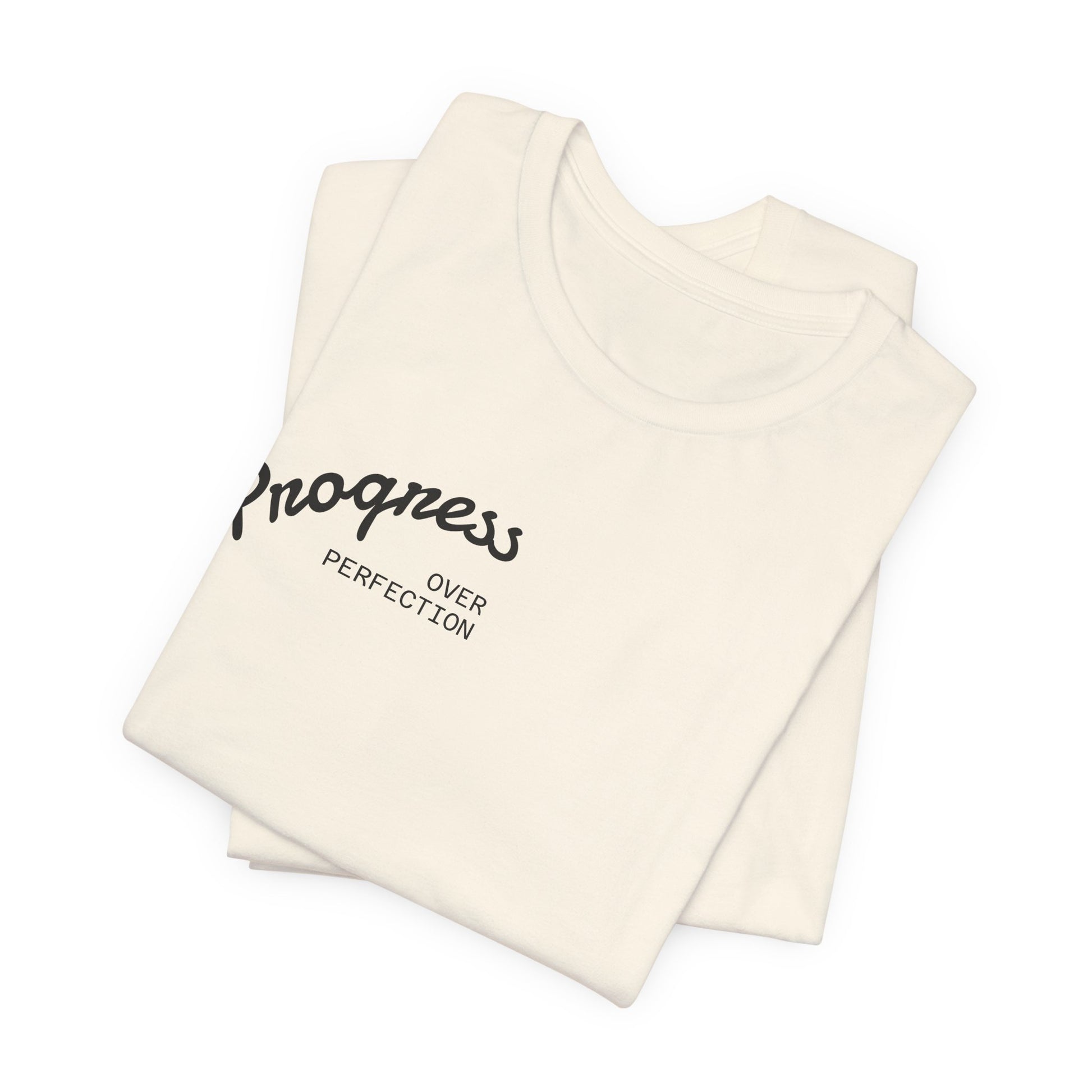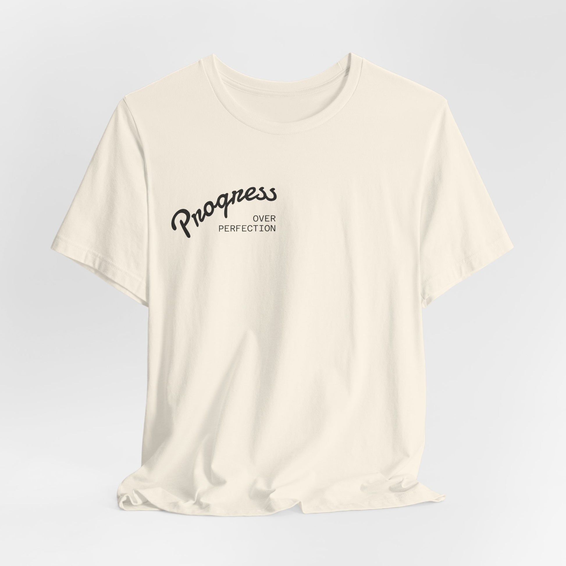 Progress Small Script Tee — Minimalist Motivational T‑Shirt